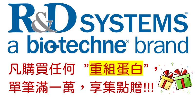 凡訂購任何 R&D 的重組蛋白,(滿萬元)享集點集點贈。單筆訂單滿 1 萬元 即贈點數 1 點、 2 萬元贈 2 點、以此類推。集滿 5點/ 10點/ 20點,即可憑點數兌換好禮四選一。