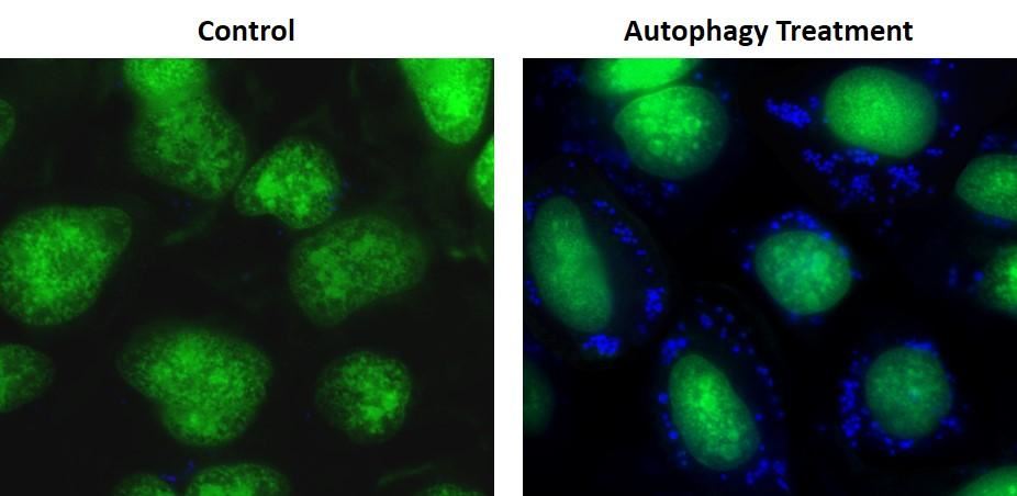 自噬作用螢光影像試劑組使用AAT 專有的 Autophagy Super Blue™ 探針,可選擇性地靶向並分析自噬的活性。