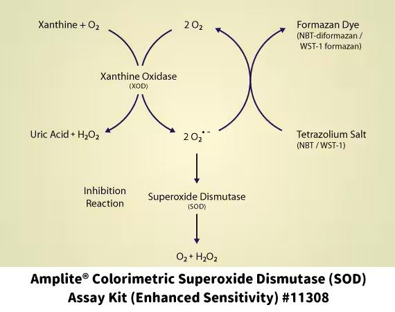 Amplite® Colorimetric Superoxide Dismutase (SOD) Assay Kit 提供了兩種快速且靈敏測定 SOD 活性的方法,且可使用一般微孔盤分析儀測定。