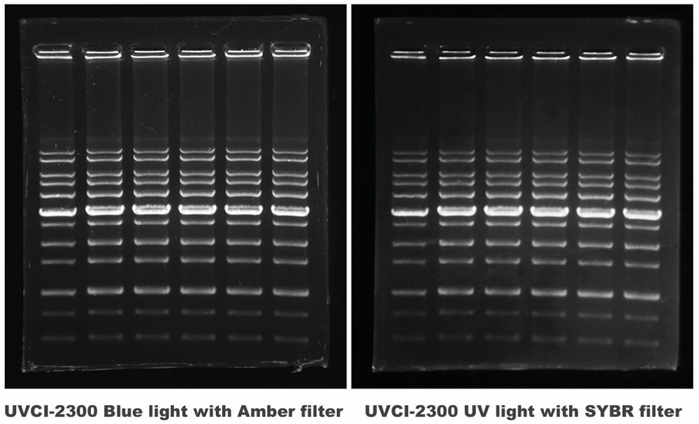 可使用紫外線(UV) 或 藍光光源偵測,並相容SYBR濾光片與琥珀色濾光片