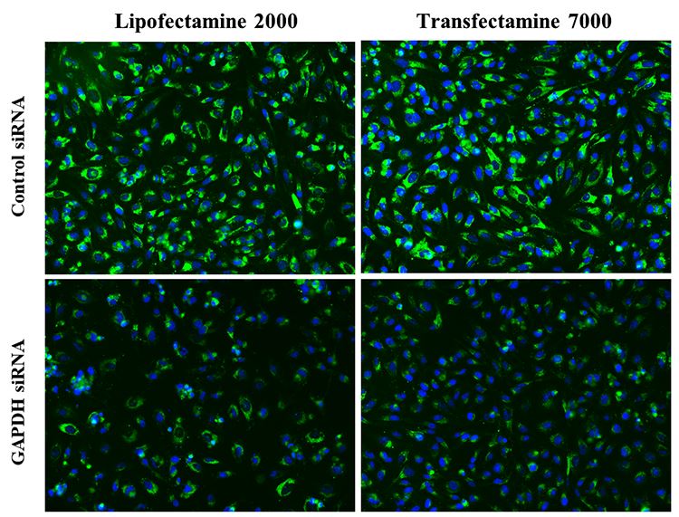 Transfectamine™ 7000 siRNA 轉染試劑專為小分子干擾核糖核酸- siRNA (small interfering RNA) 所介導的基因敲低 (knockdown) 而設計,能夠將 siRNA 和 miRNA 高效率的遞送至多種細胞類型。該試劑能夠以較低的 RNAi 濃度實現高轉染效率,有效敲低基因表達,並將非專一性的效應降至最低。