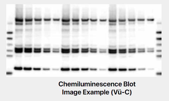 Vü-C 為獨家專利的冷光影像系統,採用先進 CMOS 感測技術,感應器能進距離貼近樣品,捕捉微弱訊號並提供清晰細緻的條帶影像,使用時只需將樣品放入托盤,系統即可自動偵測、掃描並儲存影像,此系統不需 CCD 系統的冷卻結構與濾光輪,且體積輕巧 (39 X 35.5 X 18 公分) 能節省實驗室的桌面空間。